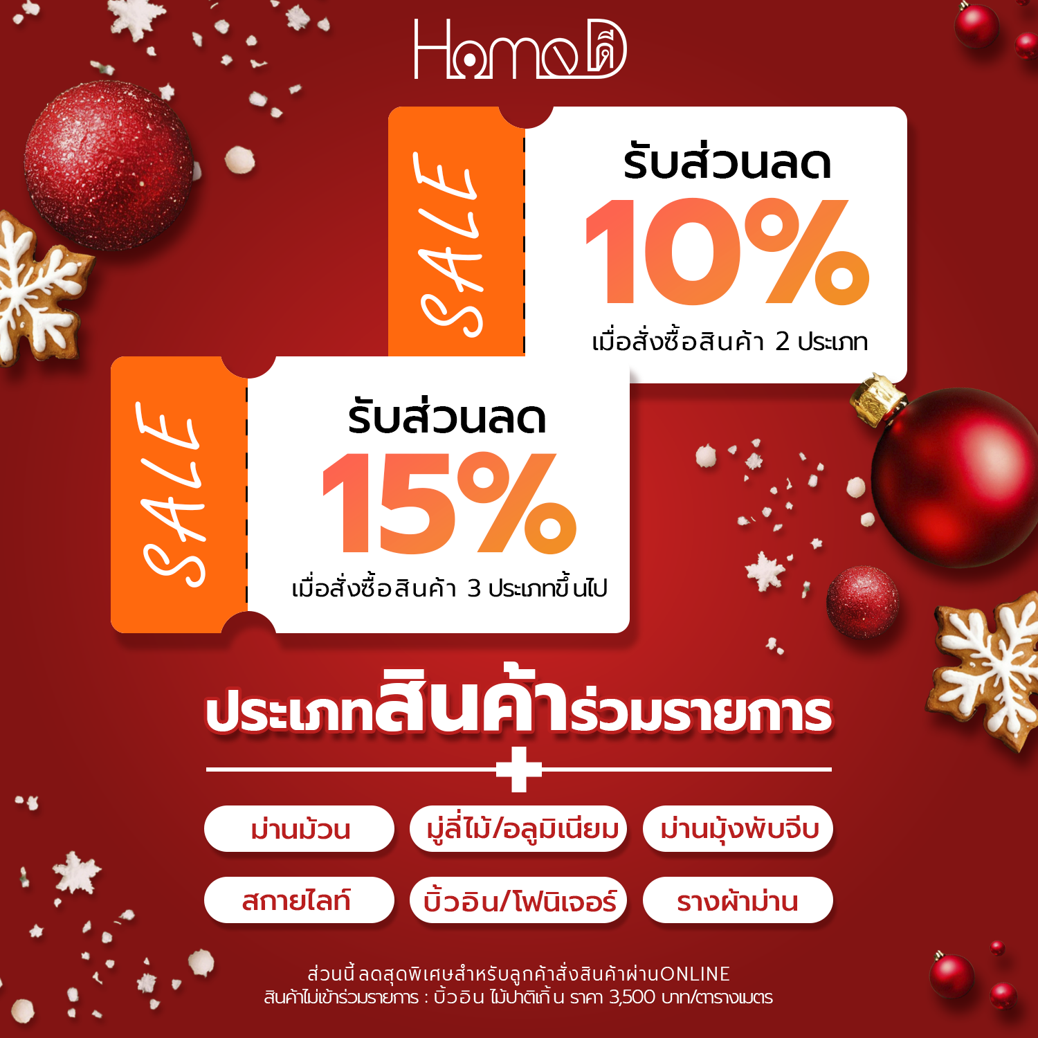กิจกรรมโปรโมทชั่นนี้เฉพาะลูก ที่สั่งซื้อสินทาง Online มีสิทธิรับส่วนลดตามราคาที่กำหนดไว้ ทุกรายการ (สินค้าไม่เข้าร่วมรายการ : บิ้วอิน ไม้ปาติเกิ้น ราคา 3,500 บาท/ตารางเมตร)