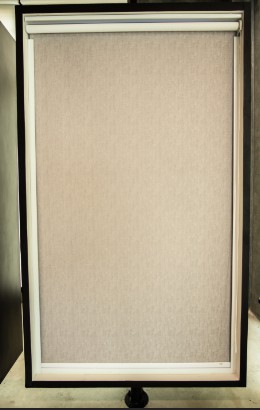 ชุดม่านม้วนซันสกรีน ทำมาจากเส้นใยโพลีเอสเตอร์ 25% และพีวีซี 75% เป็นผ้าที่มีคุณสมบัติพิเศษ แบบของเนื้อผ้าจะมีช่องรูเล็กๆ สามารถให้ลมเข้าผ่านได้อีกทั้งยังกรองแสงได้ประมาญ 5-10% ทำให้ภายในห้องโล่งโปร่งสบายตาไม่ดูทึบจนเกินไป